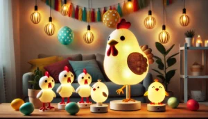 • Grappig en Uniek Ontwerp: De lampen zijn ontworpen in de vorm van schattige dieren, zoals een kip en kuikens. Ze voegen een speelse en vrolijke sfeer toe aan elke ruimte.