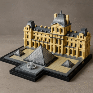 Il s’agit d’une réplique très détaillée du célèbre Louvre de Paris, avec sa pyramide de verre iconique dans la cour. Le format micro offre une finition fine qui donne à la maquette un véritable aspect de musée miniature.