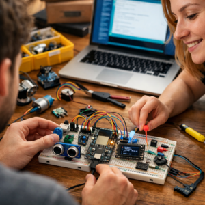 هل تفكر في بناء جهاز ذكي خاص بك؟ ربما حساس حرارة يرسل البيانات عبر WiFi، أو نظام إنذار صغير مزود بحساس لتجنب العوائق، أو لوحة تحكم صغيرة بشاشة OLED؟ إذا كنت ترغب في دخول عالم إنترنت الأشياء (IoT) بطريقة عملية وبتكلفة معقولة، فإن مجموعة ESP32 للمبتدئين خيار ممتاز للانطلاق.