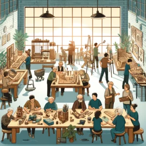 De warme en uitnodigende sfeer van de werkplaats onderstreept het belang van gemeenschap bij het bevorderen van persoonlijke groei en innovatie. Het is een plek waar banden worden gesmeed, talenten worden ontdekt en dromen worden nagestreefd.