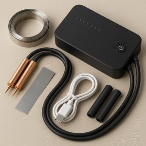 Két réz hegesztőtoll gondoskodik a stabil hőátadásról, míg a 10AWG szilikonkábelek rugalmas munkavégzést tesznek lehetővé. Az automatikus indításnak köszönhetően a hegesztés azonnal elindul, amint a hegy a nikkelszalaghoz ér — gyorsan és késlekedés nélkül.