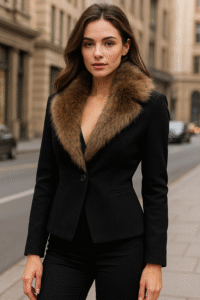 Deze jas valt op door de combinatie van elegantie, warmte en een slim fit die je silhouet prachtig volgt. De kraag van faux fur geeft een luxe uitstraling zonder dat er dieren aan te pas komen — en dat voelt niet alleen goed, het ziet er ook fantastisch uit. Het slanke design en de hoogwaardige afwerking maken deze jas ideaal voor winterse dagen, maar net zo goed voor avonden waarop je nét even wat extra flair wilt uitstralen.