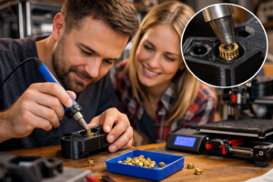 Mindenki, aki 3D-nyomtatóval dolgozik, ismeri ezt a helyzetet: az alkatrész tökéletesnek tűnik, a csavar eleinte jól tart, de néhány szerelés után a műanyag feladja. A menet elkopik, a furat kitágul, és a darab használhatatlanná válik. Pontosan itt mutatkozik meg az M3 sárgaréz hőbetétek valódi értéke – nem egyszerű kiegészítőként, hanem tartós szerkezeti megoldásként.