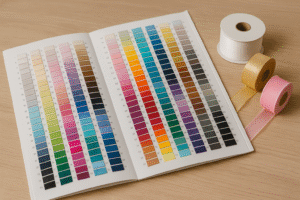 YAMA Ribbon Color Chart Card ไม่ใช่แค่พัดตัวอย่างธรรมดา แต่เป็น เรฟเฟอเรนซ์ระดับมืออาชีพ ที่มีสวอตช์จริงของริบบิ้นประเภทต่างๆ เช่น grosgrain (ริปส์), satin (ซาติน), organza, plaid (ลายตาราง), ริบบิ้น ขอบทอง/เงิน, twill (เคเปอร์), petersham, taffeta (ทัฟตา), velvet (กำมะหยี่) และอีกมากมาย ด้วยตัวอย่างจริง คุณตรวจโทนสี ความเงา ความหนาแน่น และลวดลายการทอได้ในพริบตา — สำคัญสำหรับงานผลิตจำนวนมาก (คาดผม โบ ริบบิ้นคล้องบัตร), งานวิวาห์ และการคุมโทนสีแบรนด์ให้คงเส้นคงวา