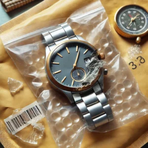 Een klant ontving een horloge in een cellofaan zakje verpakt in een bubbelenvelop. Bij aankomst bleek de secondewijzer helemaal verbogen en waren de minuten- en seconde-as beschadigd. Dit roept vragen op over de verpakkingsstandaarden van de verkoper.