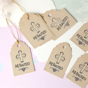 Deze charmante tags zijn ideaal voor het toevoegen van een persoonlijke touch aan doopfeesten, babyborrels en andere religieuze gelegenheden. Ze worden geleverd in sets van 20, 50 of 100 stuks, zodat je precies kunt kiezen hoeveel je nodig hebt voor jouw evenement. Elke tag is zorgvuldig ontworpen met een stijlvol kruis en de tekst ‘Mi Bautizo’, wat ‘Mijn Doop’ betekent in het Spaans, waardoor ze een bijzondere betekenis krijgen.