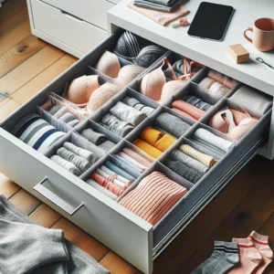 Deze multifunctionele opbergdoos is perfect voor het organiseren van je ondergoed, sokken, bh’s en andere kledingstukken. Met verschillende compartimenten kun je je spullen netjes gescheiden houden en gemakkelijk vinden wat je zoekt. Of je nu je kledingkast wilt opruimen of meer ruimte wilt creëren in je laden, deze opbergbox is de ideale oplossing.