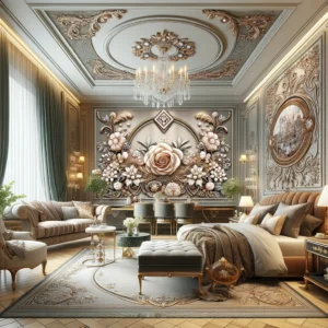 Deze 3D muurschildering, die luxe en elegantie uitstraalt, is ontworpen om elke ruimte te transformeren. Of je nu je woonkamer een frisse uitstraling wilt geven, een boeiende achtergrond voor je restaurant zoekt, of je slaapkamer in een koninklijk toevluchtsoord wilt veranderen, deze wallpaper is de perfecte keuze. Het ontwerp, met zijn gedetailleerde juwelen en bloemen in Europese stijl, voegt een laag van rijkdom en verfijning toe die gasten en familieleden zal verbazen.