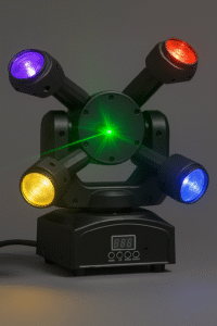 Dit compacte, maar krachtige apparaat combineert meerdere lichteffecten in één. Dankzij de vier beweegbare armen met RGBW LED’s (rood, groen, blauw, wit) en lasers creëer je dynamische, kleurrijke patronen die elke ruimte omtoveren tot een mini-club. Het apparaat ondersteunt bovendien DMX512-besturing, waardoor je het naadloos kunt integreren in een professionele lichtshow.