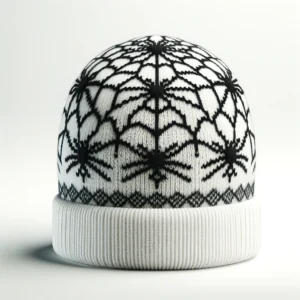 Terwijl de winter zijn intrede doet en de wereld om ons heen in een deken van sneeuw hult, zoeken we naar manieren om zowel warmte als licht in ons dagelijks leven te brengen. Dit seizoen introduceer ik een accessoire dat perfect past bij de winterse witheid en tegelijkertijd een uniek designelement toevoegt: de witte muts verfraaid met een zwart spinnenwebpatroon. Dit stuk belichaamt de zuiverheid van de winter en voegt een intrigerend contrast toe met het zwarte spinnenweb.