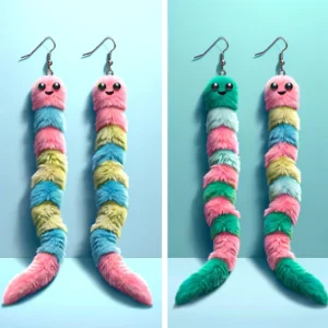 Deze lange pluche worm oorbellen zijn het toonbeeld van creativiteit en speelsheid, waarmee je gegarandeerd de aandacht trekt op elk feest of sociale bijeenkomst. Ze combineren de zachtheid van pluche met het eigenzinnige ontwerp van een worm, resulterend in een accessoire dat zowel comfortabel als onvergetelijk is. Of je nu een dierenliefhebber bent, een fan van unieke sieraden, of gewoon op zoek naar iets dat je outfit net dat beetje extra geeft, deze oorbellen zijn de perfecte keuze.