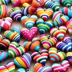 Elk hartje is zorgvuldig ontworpen met kleurrijke strepen, wat elke bedel een uniek en speels karakter geeft. Of je nu op zoek bent naar een manier om wat kleur toe te voegen aan je dagelijkse outfit of een speciaal handgemaakt cadeau wilt creëren, deze bedels bieden eindeloze mogelijkheden. Hun veelzijdigheid maakt ze geschikt voor allerlei creatieve projecten, van het personaliseren van je sieraden tot het decoreren van tassen of sleutelhangers.