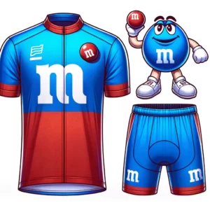 Voor de enthousiaste fietser die graag een unieke stijl op de weg brengt, introduceer ik de M&Ms geïnspireerde fietsshirt set in een oogverblindend blauw. Deze set is niet alleen een eerbetoon aan je favoriete chocoladesnoepjes, maar biedt ook alle technische eigenschappen die je van hoogwaardige fietskleding mag verwachten.